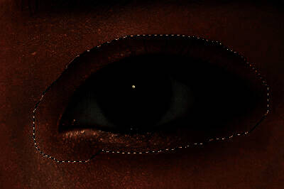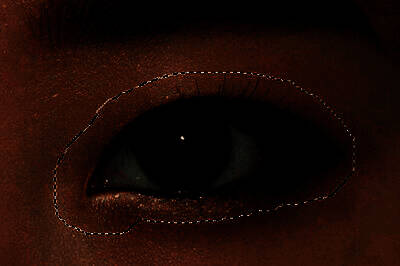 3、使用【加深工具】,在选取内部进行涂抹,直到内部眼皮颜色变的有点黑为止。