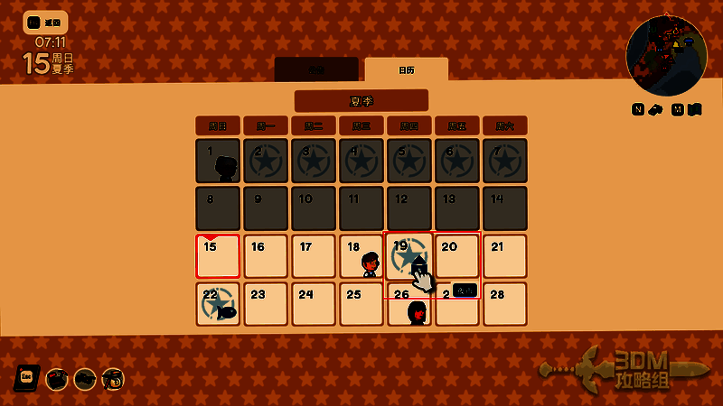 首先要建造【约翰好物】商店、博物馆以及游客帐篷。成功建造后,可以在告示板的日历处看到夜市的活动。