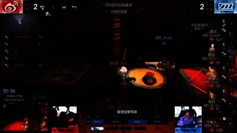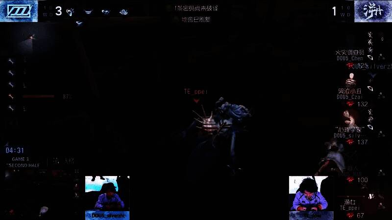 第三天WBG vs DOU5加赛下半局,DOU5_Yan守夜人加赛四抓取得胜利:本赛季的首个长平之战,DOU5_Yan面对比分劣势上场,必须三抓或保平拖延比赛时间才可以拿下比赛,DOU5_Yan守夜人开局在起点追击祭司,风行跳板逼道具,两台密码机时击倒祭司。画家吸画欲二救辅助牵制,守夜人直接追击,板区博弈画家飞轮后极限板后出刀,成功逼救,快速淘汰祭司。守夜人击倒佣兵挂上后,密码机压好,但是对局时间已经过长,求生者方需要拼三出,所以选择再救一波保佣兵开门战满状态,但是调酒师没能给上酒,佣兵吃刀后亮机,守夜人二楼移形,击倒调酒师后又快速击倒佣兵,三抓终结比赛。