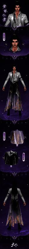 男款配色则更加沉稳大气,宛如翩翩公子。少侠以银冠半束墨发,侧分刘海修饰着俊朗的脸庞,上衣剪裁大方,双肩及左胸均绣有花叶刺绣,领口微微敞开个性十足,腰间金色珠链垂坠而下,闪烁着细碎的光芒,下摆外罩黑白渐变轻纱,末端几抹金纹仿若肆意燃烧的火焰,步履间形成一道独特的风景线!