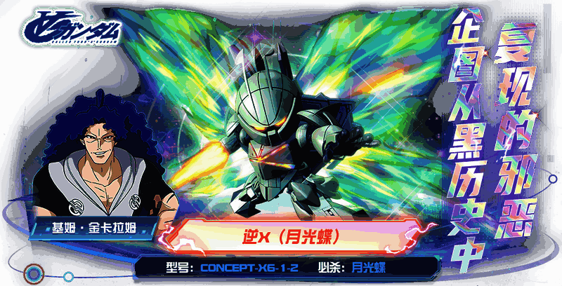 哈喽,大家好,欢迎来到《敢达决战》情报分享的现场。想必大家对于《机动战士高达》系列动画片都很熟悉。战歌起,幻神出,月光蝶舞,大家对于《∀高达Ⅱ月光蝶》这部动画片应该也很熟悉,胸口藏核弹,背上月光蝶,非常酷炫,而它的同款机体近期上线《敢达决战》,更是让玩家们直呼惊喜,今天我们就来分享一下逆x(月光蝶)CONCEPT-X6-1-2的情况吧。