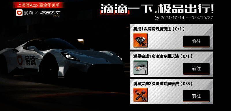 【滴滴App】-【冲!极品飞车传奇赛车】-【抽!滴滴全年免单】参与抽奖