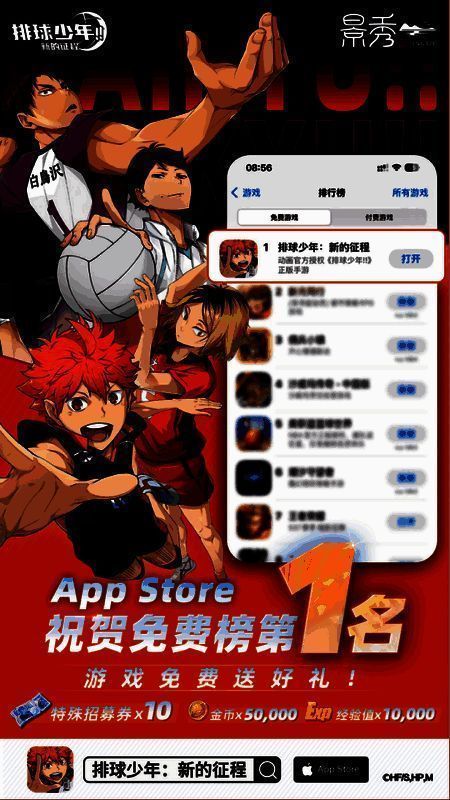 在玩家与游戏的双向奔赴下,《排球少年:新的征程》公测首日就登上App Store免费榜第一名,在玩家的支持与认可中又一次看到了顶端的景色!