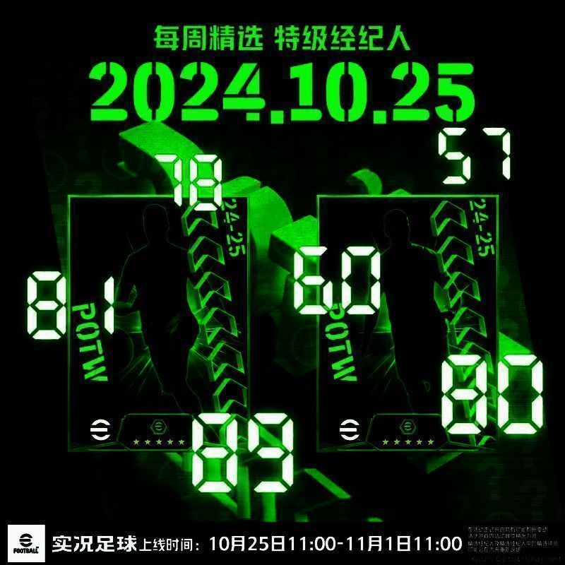 【每周精选 特级经纪人(10.25~11.01)】明日上线,你将有机会获得本周在实况赛场表现优异的精选球员。