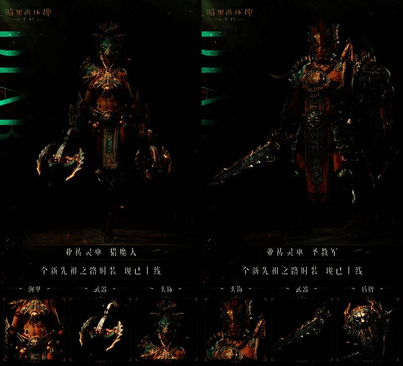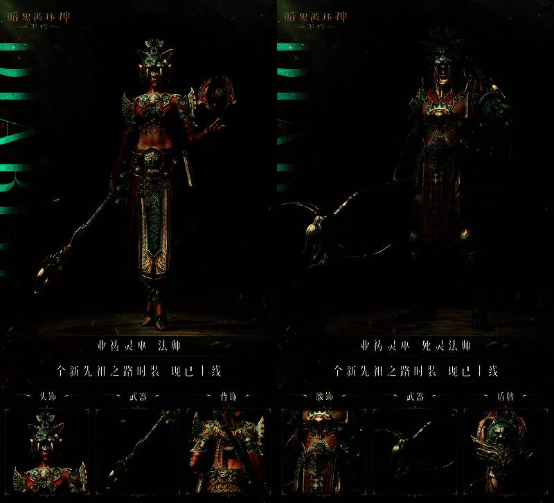 密林之中,暗藏玄机!《暗黑破坏神:不朽》全新先祖之路时装【业祷灵巫】采用青铜工艺,浇筑出复杂肩甲、头盔、靴子等部件,并在其上雕刻出大量纹饰和兽首元素,古老而神秘的气息扑面而来。贴身服饰则选用了皮革和更加柔软的绸布,作为身体和青铜甲之间的缓冲。