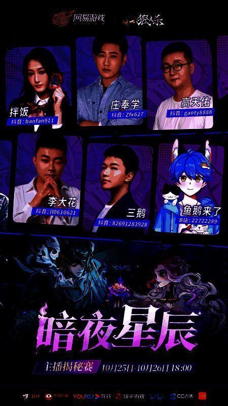 狼人杀新板子“暗夜星辰”主播揭秘表演赛特别来袭!10月25日—10月27日,官方特邀主播将率先体验12人场“暗夜星辰”板子对局,全方位为大家展示新板子的相关配置及规则,让玩家们可以更加直观的了解到新板子的玩法难度和对局技巧。(插入图片1)