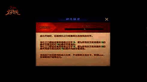 神化之力系统新增拓展功能——神化镇世。在战斗开始时,可以压制神话之力收集率比自己低的对手,根据收集率的高低来增加我方伤害输出与伤害减免。
