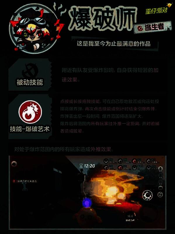 同时,或将触发爆破师的被动技能,当附近有队友受爆炸影响时,自身将获得短暂的加速效果。
