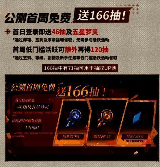 此外,游戏还公布了公测福利UP池80抽保底,100%必出当期五星UP角色!常驻池60抽保底!还有公测首周免费166抽,及1000W预约奖励等海量公测福利。
