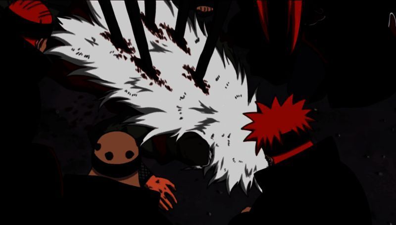 自来也看着六道佩恩,脑海里回想起了过去所见到的一切,但佩恩丝毫不给任何机会,立马对自来也发起了攻击。将自来也打成濒死状态。