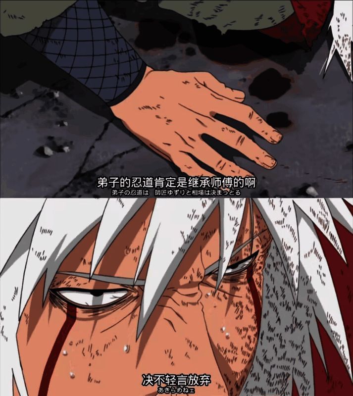 自来也老师自始至终都在贯彻着他的忍道:“所谓忍者的人生,其价值不是由其怎样活着来决定的,而是由其到死之前有何作为来决定的。”