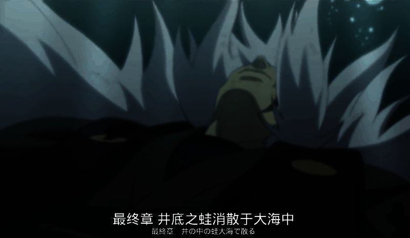 随后自来也便被自己的徒弟长门操控着六道佩恩彻底打入水底,但他最后依然微笑着:“自来也豪杰物语最终章——井底之蛙消散于大海之中之卷!”