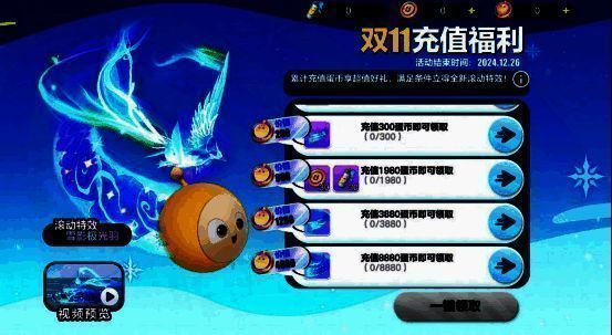 双11折扣福利第一弹,充值返利!11月1日至12月26日,限时充值返利活动开启,小蛋仔们在活动期间累计充值达到一定数额,即可获得配饰、滚动特效、许愿币等超值好礼!最高至臻品质滚动特效等蛋来拿!