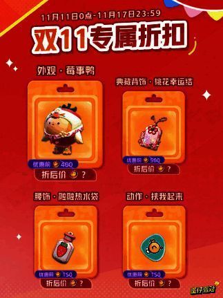 双11折扣福利第三弹,折扣直购活动来袭!11月11日至11月17日,小蛋仔们可以上岛随机抽取自己的双11专属折扣,共有两次抽取机会,将选取折扣力度最大的生效。没有最欧,只有更欧,速速抽取折扣,秒杀新品外观!