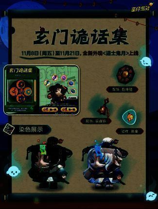 身着黑金道袍,以红线和铜钱装饰斗笠帽,一张燃烧着的符箓贴在帽檐,遮住他略显妖异的青金三眼和玩世不恭的嘴角——《降魔录》缓缓翻开,站在小蛋仔们眼前的这位就是“道士鬼月”,11月8日至11月21日上线。