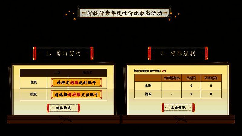 【封神服充值 老服拿返利 最高可返200%金币和海玉奖励】