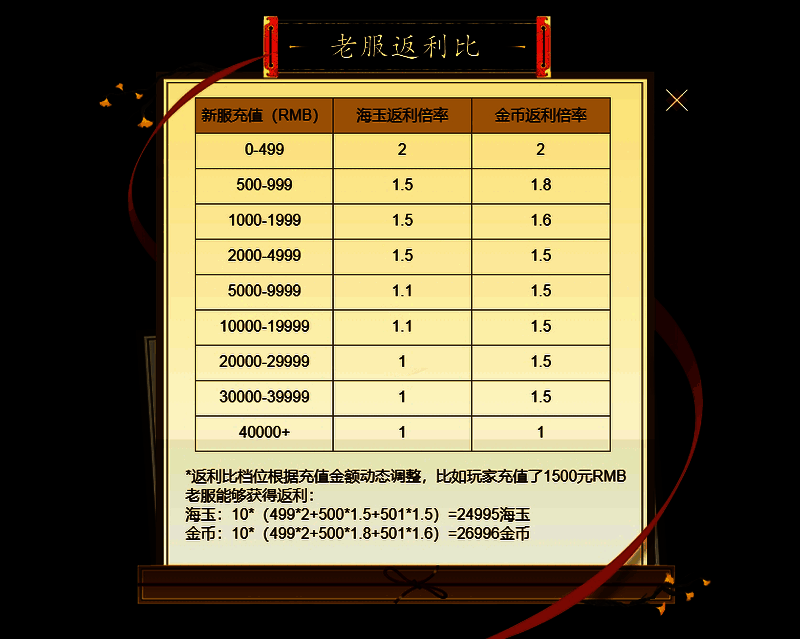 以此类推,新服充值,老服最高可返还200%的金币和海玉奖励!