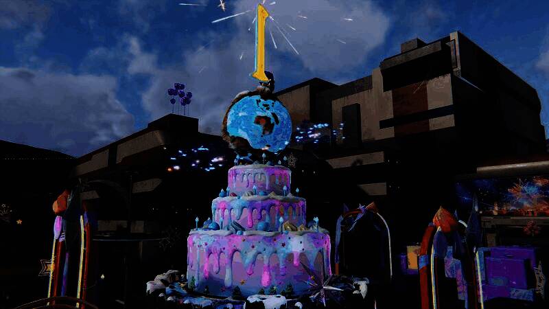 进入游戏就会发现,星球已经被充满科幻元素的生日礼物装点一新,玩家可以前往杜加避难所,一起制作巨型蛋糕,全服制作次数达成目标即可获得自选SSR宠物、「星幻潮」系列武器外观等奖励~同时我们为每位玩家准备了带有生日祝福语的烟花枪,一起把送给星球的祝福化作漫天赛博焰火,点亮这一美好时刻!