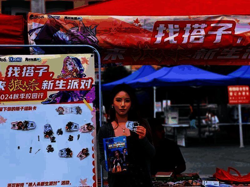 本次校园行活动也给狼同学们带来了一些全新的玩法体验,新同学们纷纷来到摊位前领取组队卡,找寻自己一起狼人杀的默契伙伴。同时也有不少狼同学通过官方此前发布的“发视频找搭子”的线上互动活动,参与了到本次校园行中。