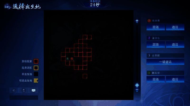战斗开始前少侠可以挑选自己的出生地,在选区地图中,我们可以清晰看到已被其他少侠选择了的区域、高资源区域等信息,少侠们可以自由选择。