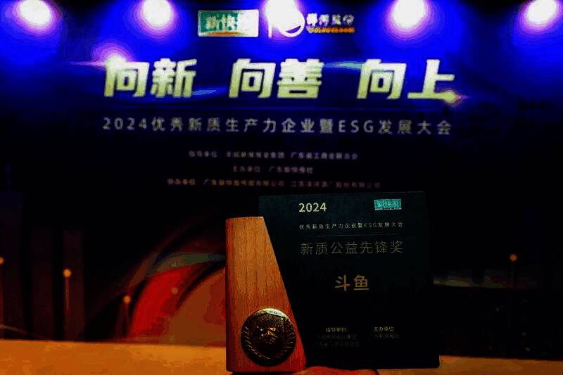 11月18日,由羊城晚报报业集团与广东省工商业联合会联合指导、广东新快报社主办的“2024优秀新质生产力企业暨ESG发展大会”在广州举行。本次大会聚焦“向新•向善•向上”的主题,深入围绕企业在推进ESG转型进程中的进展与挑战进行了探讨。同时,还特别表彰了在ESG领域表现卓越的企业与项目。其中,国内知名直播平台斗鱼荣获“新质公益先锋奖”,也是该奖项唯一获奖企业。