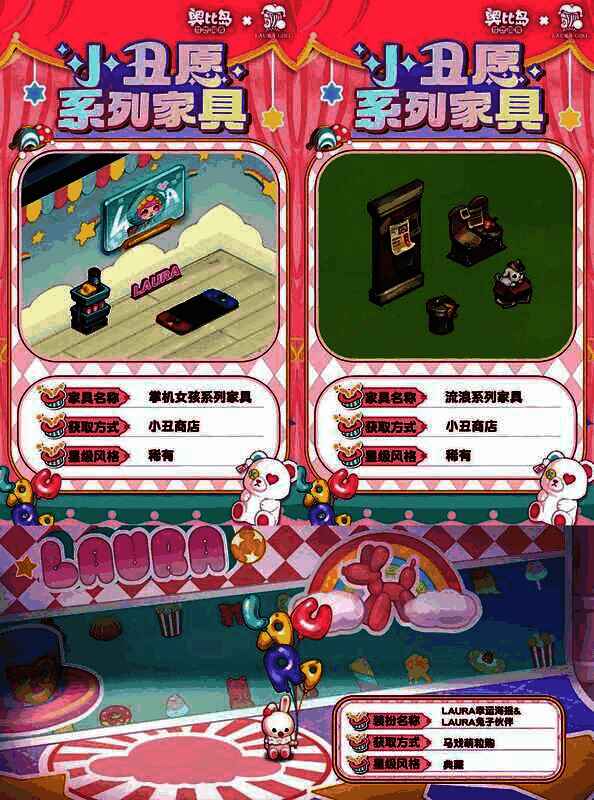 奥比岛xLAURA联动限时活动——「小丑愿」12月5日已开启!现在下载奥比岛手游,登岛观看快乐马戏团的演出!限定主题时装、家具等你解锁,还有丰厚奖励等你领取!