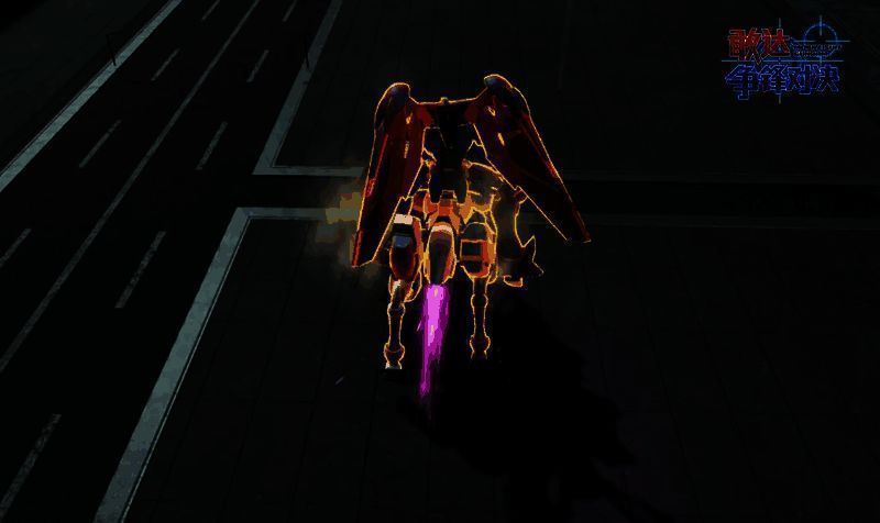 【必杀技】按下必杀键。在目标身后呼叫神敢达一同向目标快速冲撞攻击,之后在终点生成持续吸人的超级龙卷风。