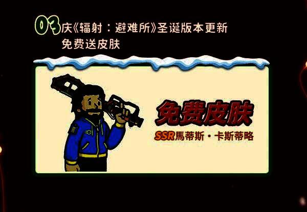 在末日世界中,节日同样重要,何况是圣诞!本次的免费皮肤SSR马蒂斯·卡斯蒂略免费送!在圣诞版本更新期间(12月17日-1月7日),您均可登录领取,机不可失!