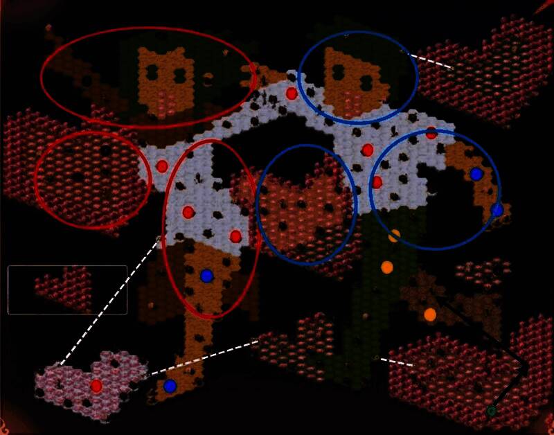 (2)依靠2队探索蓝色圆圈范围的地块并挑战远征首领;