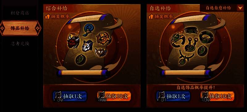 Tip:若对提升战力需求不大的忍者学员,为了节省“饰品补给券”的消耗,可一直抽“综合补给”,将大部分饰品升阶为蓝色后,再考虑抽“自选补给”。