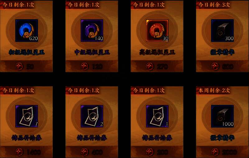 4、每日兑换完“饰品补给券”后,根据自己剩余的征服积分兑换自己缺少的远征灵玉;