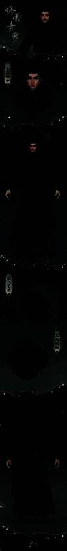 侧分的刘海修饰着面庞,及腰长发半挽于脑后,以鎏金发饰固定。不规则设计的墨色毛领与袖口与长袍下摆处的毛裘包边相呼应,单边披风覆于肩侧,平添几分沉稳。印有烫金印花的皮质腰封勾勒挺拔身姿,华贵挂坠与金链装饰其中,为整体造型赋予了更多层次感。墨绿长袍下摆缀满鎏金纹饰,日光下泛着华彩光辉,隐约可见磅礴山川与波涛浪花,高贵气质不彰自显!