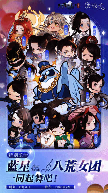对了,12月31日晚刀妹也将火热探班、开启户外直播!还有特别嘉宾——来自光启市的蓝星掉落现场共舞!来围观吧!邂逅即得天刀、光夜各种周边随机礼赠~