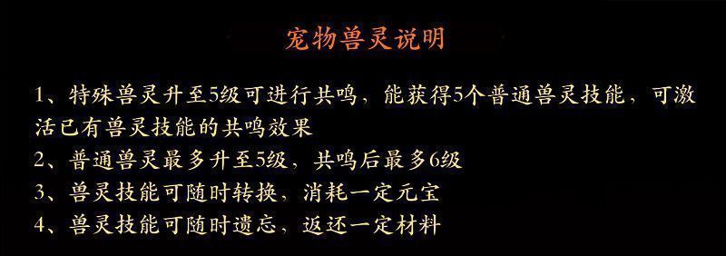 以上就是雷震子给大家带来的兽灵系统的入门介绍啦,也希望大佬们多多给雷震子投稿不同宠物的兽灵搭配推荐!