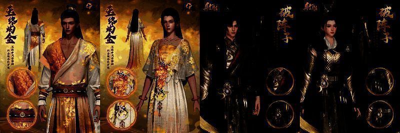 于此同时,衣橱也全面上新,或金戈铁马,或诗酒风流,切莫错过!全新外观“破阵子”和“玉络灼金”,以沙场烽烟与月华流转为主题,展现江湖儿女飒爽身姿。郭靖、黄蓉等六位侠侍专属服饰也同步开放,少侠可与同性别的侠侍穿着同款衣装携手同行。
