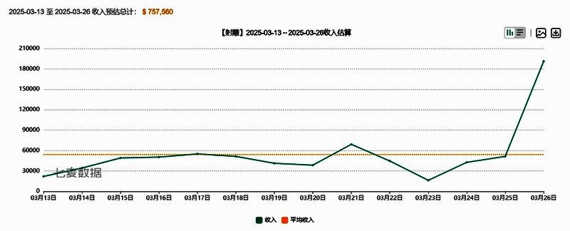 据七麦数据显示,3月13日~3月26日,《射雕》2.0版本iOS平台预估流水已达到约550万元人民币($757,560),尚有其他收入不在监测范围内以及未包含平台分成。从流水趋势来看,《射雕》2.0版本上线半个月仍处于发力期,这一成绩反映了游戏在初期上线阶段,获得了市场的积极反响,被玩家高度接纳。考虑到游戏的高品质与吸引力、网易的品牌影响力、市场推广策略等综合因素,《射雕》的后劲值得期待。
