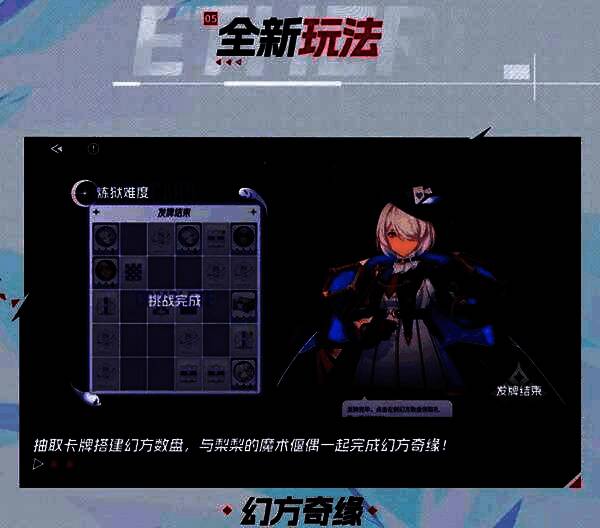 在玩法方面,魔法师梨梨将为各位超链者们提供主打随机要素挑战的全新PVE玩法——“幻方奇缘”:在面对随机生成的BOSS关卡、宝箱时,需先抽取由梨梨随机发放的占卜卡牌,每张卡牌都有不同的效果,借由卡牌之间的自由搭配调整BOSS难度。而玩家可以根据自身实力去自由调整关卡难度与内容,以获得不同等级的奖励内容。
