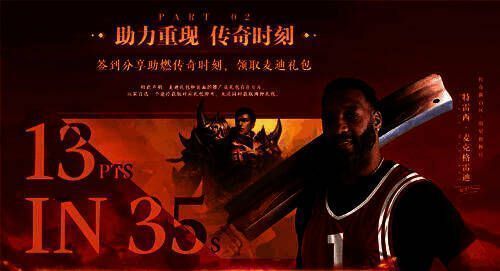 麦迪曾以惊人的35秒狂砍13分逆转奇迹载入史册,这也被称为“麦迪时刻”,相信我们国内的篮球迷都不陌生。通过签到、分享助力推动进度条,开启我们的“传奇时刻”,即可领取麦迪礼包!