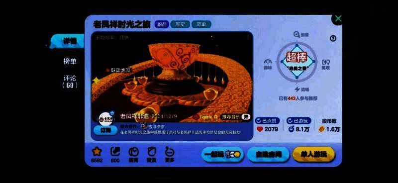 在游戏内,《蛋仔派对》推出了联名地图《老凤祥时光之旅》。地图将老凤祥跨越三个世纪的经典元素融入其中,可爱的蛋仔角色与老凤祥的珠宝元素相得益彰,让玩家在游戏过程中仿佛穿越时光,亲身感受老凤祥的品牌发展历程与深厚文化底蕴,使传统珠宝文化在游戏世界中焕发出新的活力,让年轻玩家更容易接受和了解传统文化。上线短短几天内,就吸引了超过8万+玩家打卡闯关,成为游戏社区内的一大热门话题。