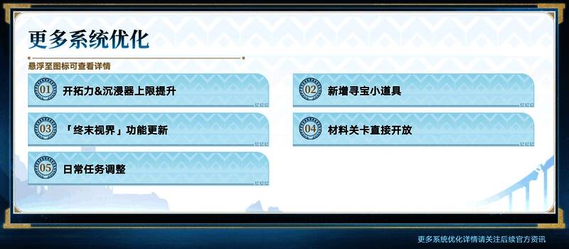 3.0版本更新提升了开拓力和沉浸器的上限,开拓力由原先的240→300;沉浸器由8个→12个;