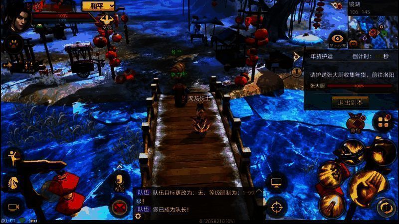 新年将近,家家户户都备起了年货。咱们天龙的张大厨也准备了充足的年货准备过年,岂料运输途中居然被恶人盯上,要抢走满满当当的年货,少侠快去结伴帮助张大厨脱困并保护年货吧。