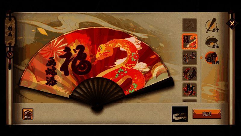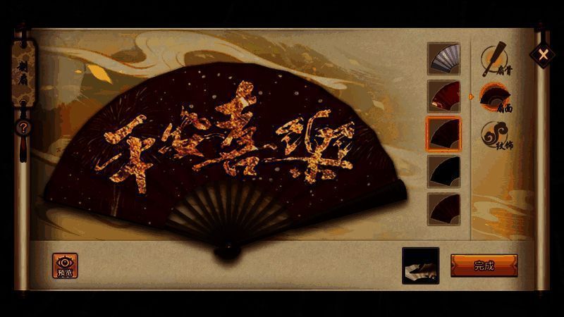 在制扇界面中,少侠可以自由选择心仪的扇骨与扇面,并为其增添独特的扇面纹饰。这些纹饰不仅可自由移动、缩放,还能翻转,让大家尽情发挥!