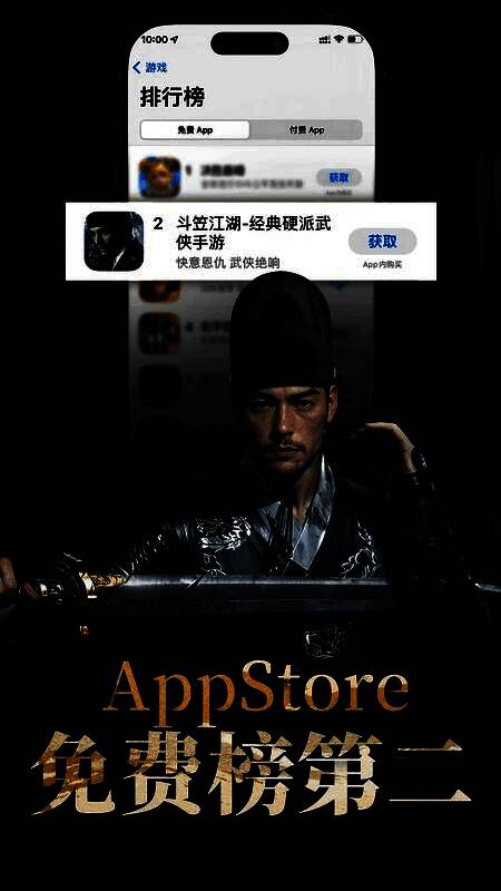 国风硬核武侠热情已被唤醒,《斗笠江湖》自昨日开放预下载以来,下载量一路攀升至AppStore免费榜第二位。