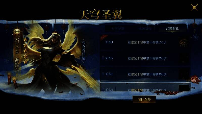 活动期间,领主大人在【光·天穹圣翼】、【暗·桃源宗师】其中任意一个限定卡包达到特定召唤次数即可获得相应奖励。