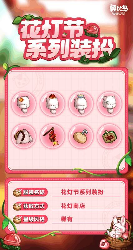 在「花灯节」限时活动期间,小奥比们可获得道具「福运贴」。「福运贴」可在「花灯商店」免费兑换「璀璨烟花发夹」「富贵帽」「团团圆圆」「膏药贴」「哪里来的锅」「好运来鞭炮」等装扮,以及「蜜桃糕点小篮」「蜜桃小筐」「蜜桃花瓣小毯」「蜜桃烛灯」等家具~小奥比们千万不要错过哟!