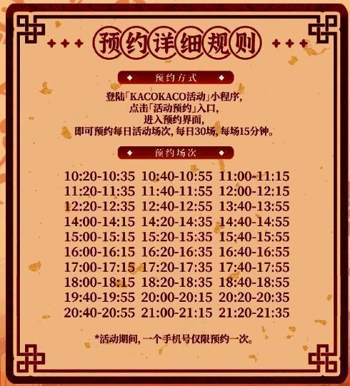 玩家可前往淘宝搜索【KACOKACO活动】,登陆淘宝,点击「活动预约」入口,进入预约界面,即可预约每日活动场次。