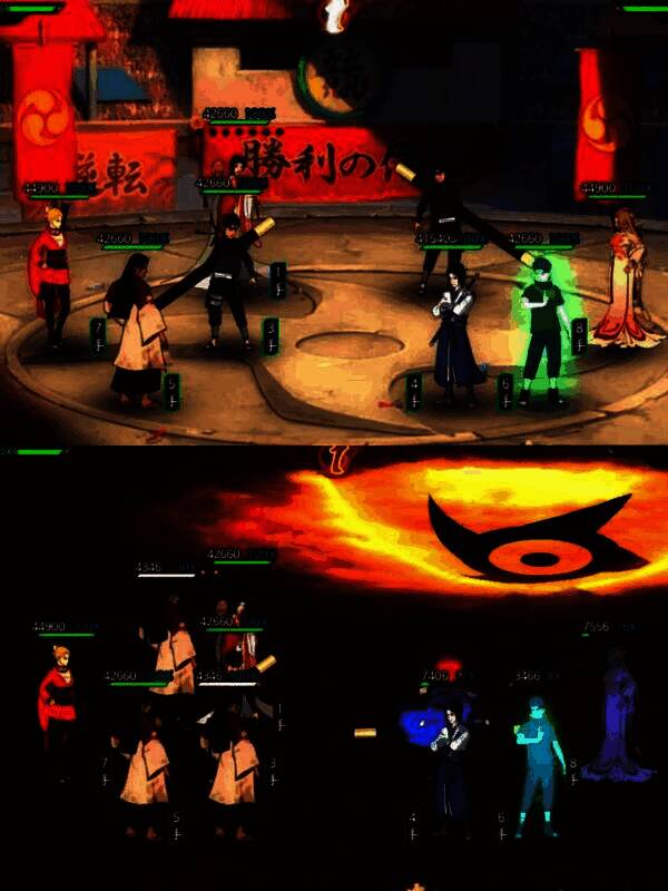 1、我方减员虽多,但第一回合将对方血量消耗较多,起手奥义,对方三名忍者战败;