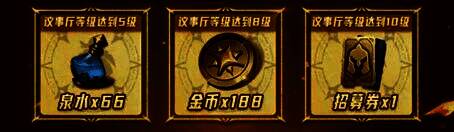 活动期间,在心悦俱乐部下载游戏首次注册角色,议事厅等级达到指定等级即可领取奖励,每档奖励单账号限领1次。