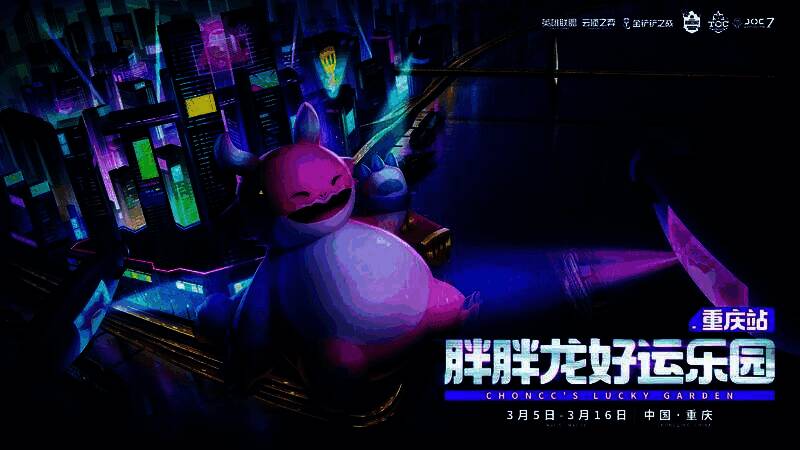 与JOC7全国总决赛决赛一同拉开帷幕的胖胖龙主题线下活动开放时间为3月8日-3月16日,其中活动前2天和最后3天(即3月8、9日和3月14、15、16日)为主题运营日,弈士们可参与胖胖龙好运乐园和胖胖龙重庆躺赢两大打卡活动获得奖品;在非主题运营日期间,弈士们也可以前往线下与胖胖龙合影留念。