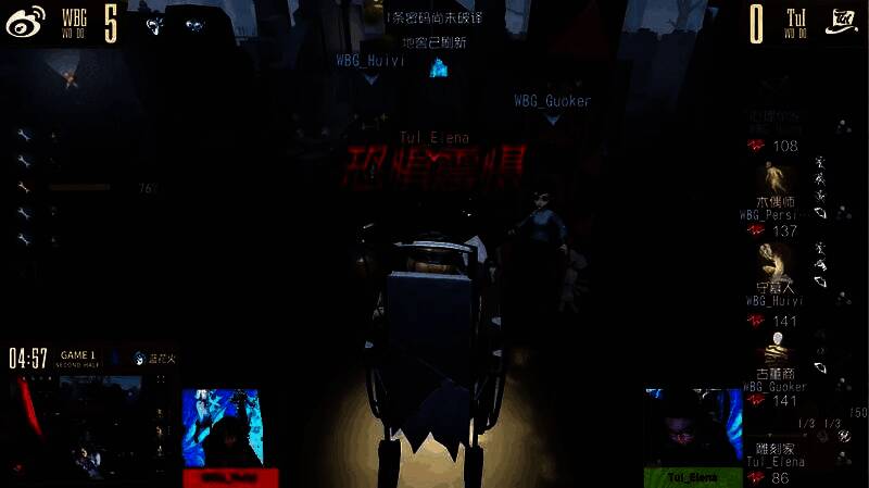 第一天Tul vs WBG第一局下半场,也是榜前知名监管者Tul_Elena在第一手反其道而行之,摒弃版本强势角色,面对对方五分的积分优势,选出自己的绝活雕刻家,这样避免第一局选取的角色进入全局ban选,第二局对手将自己的绝活ban掉,为自己在后续的对局中更有在“跛脚羊”和“喧嚣”之间摇摆的余地,开局追击WBG_Huan的心理学家,在平地拿到一刀存在感,利用俊敏之形将板子封住,把心理学家逼至死胡同再次快速拿取一刀,而后继续用俊敏之形封板头铁过板,快速将心理学家击倒。挂上心理学家后,抛出象形坟场锁定守墓人位置,利用走位将守墓人逼离狂欢之椅附近,由于淘汰进度即将过半,面对守椅能力极强的雕刻家,WBG_Huiyi选择继续遁地迂回之后压满救。待淘汰进度过半,Tul_Elena果断出刀将守墓人打出,这一刀存在感刚好开出二阶技能,合成的崇高之形对守墓人造成伤害,Tul_Elena紧接着继续合成崇高之形并接连闪现将守墓人击倒,使其不能救援。此时外围剩下的三台密码机将将过半,WBG求生者面临着巨大的压力。监管者挂上守墓人后也利用象形坟场找到WBG_Persica的木偶师,虽然WBG_Persica雕像躲得极好,而且也利用极快的反应松手避免被恐惧震慑,但刚好是松手的这一下,守墓人的淘汰进度流逝过半,而木偶师救下人后没能及时成为“路易”而被击倒,古董商不得不放下手中的密码机参与到救援中,此时的局面对于Tul_Elena来说,抓谁都可以,抓谁都是手到擒来,追击古董商,干扰电机,闪现震慑前来救人的守墓人,最后四抓轻松收入囊中。
